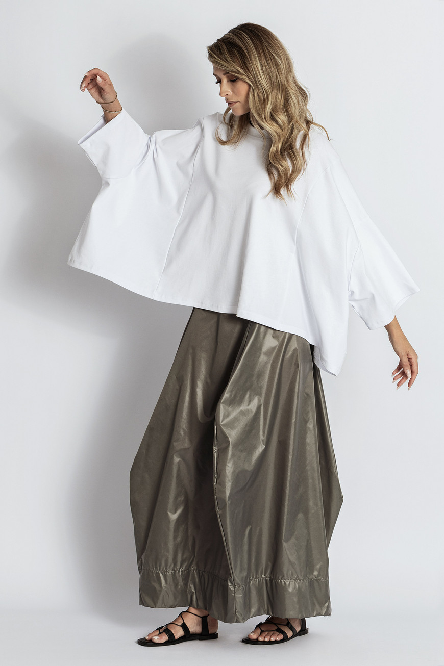 Tricou cu o croială lejeră, prevăzut cu mâneci vaporoase, trei sferturi. Este confecționat din bumbac, care oferă confort și libertate de mișcare. Designul simplu il face ușor de integrat în ținute casual sau office.