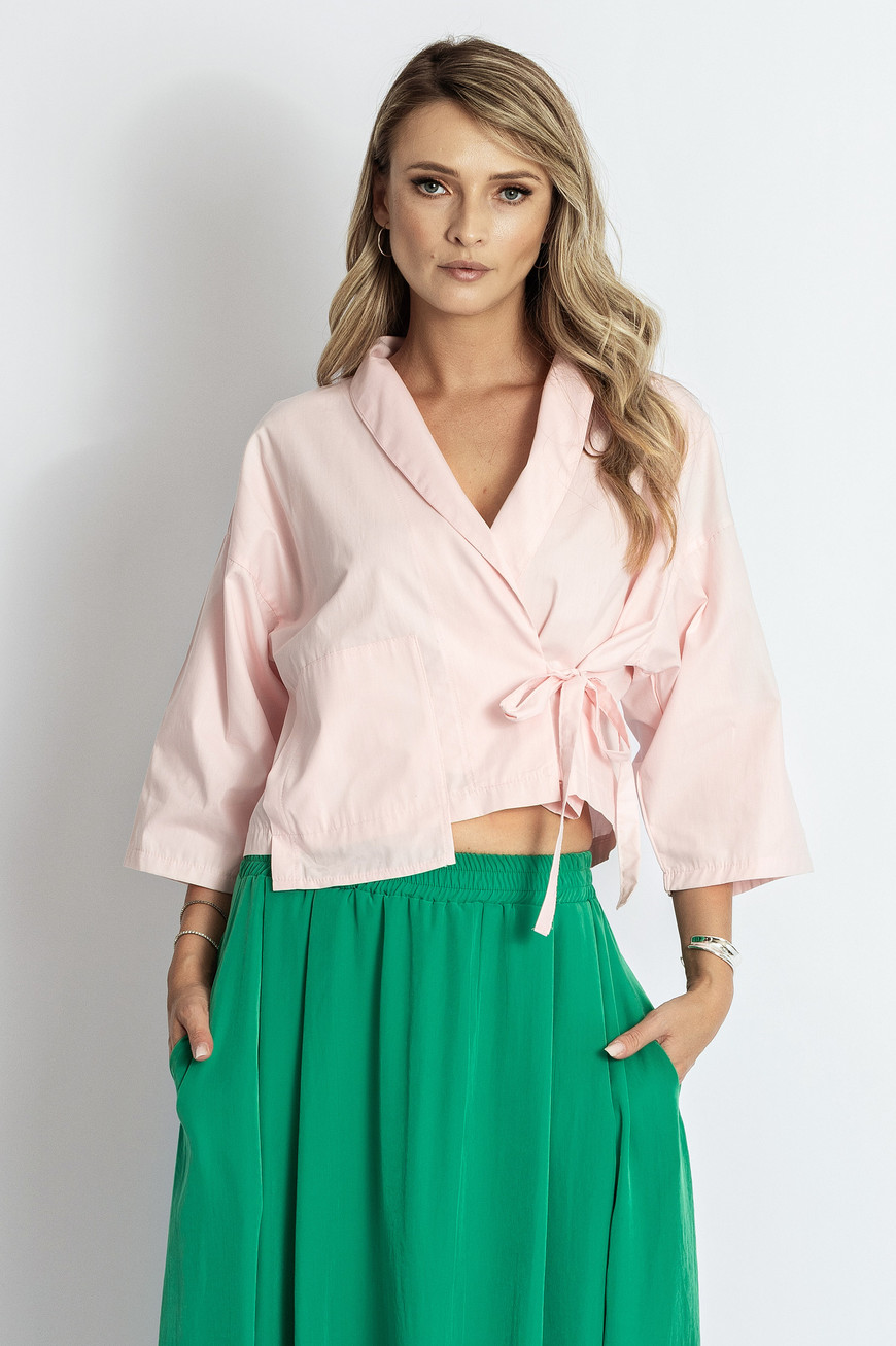 Cămașă inspirata din stilul urban japonez cu inchidere laterala prin cordon si buzunar frontal.
