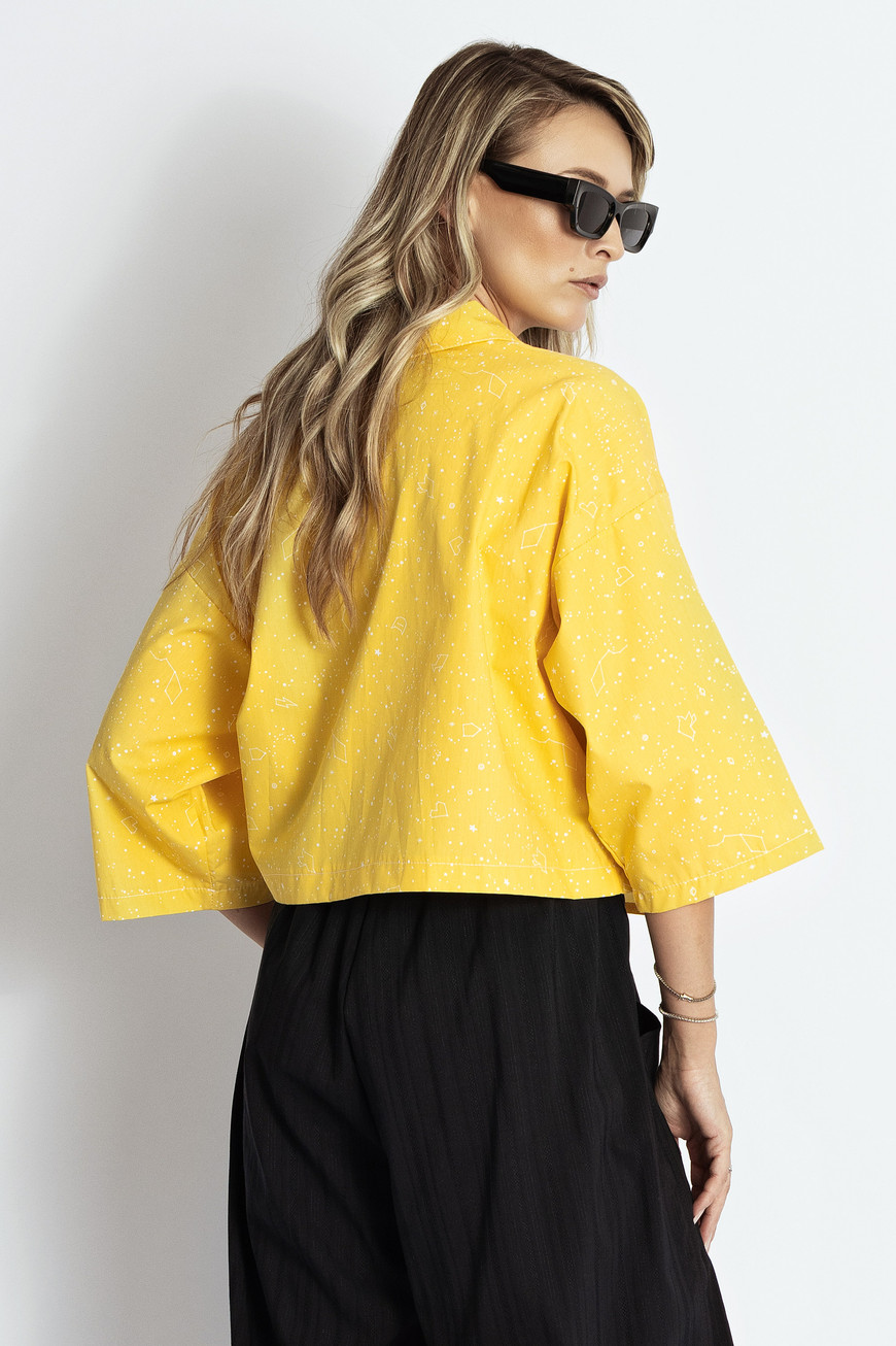 Cămașă inspirata din stilul urban japonez cu inchidere laterala prin cordon si buzunar frontal.
